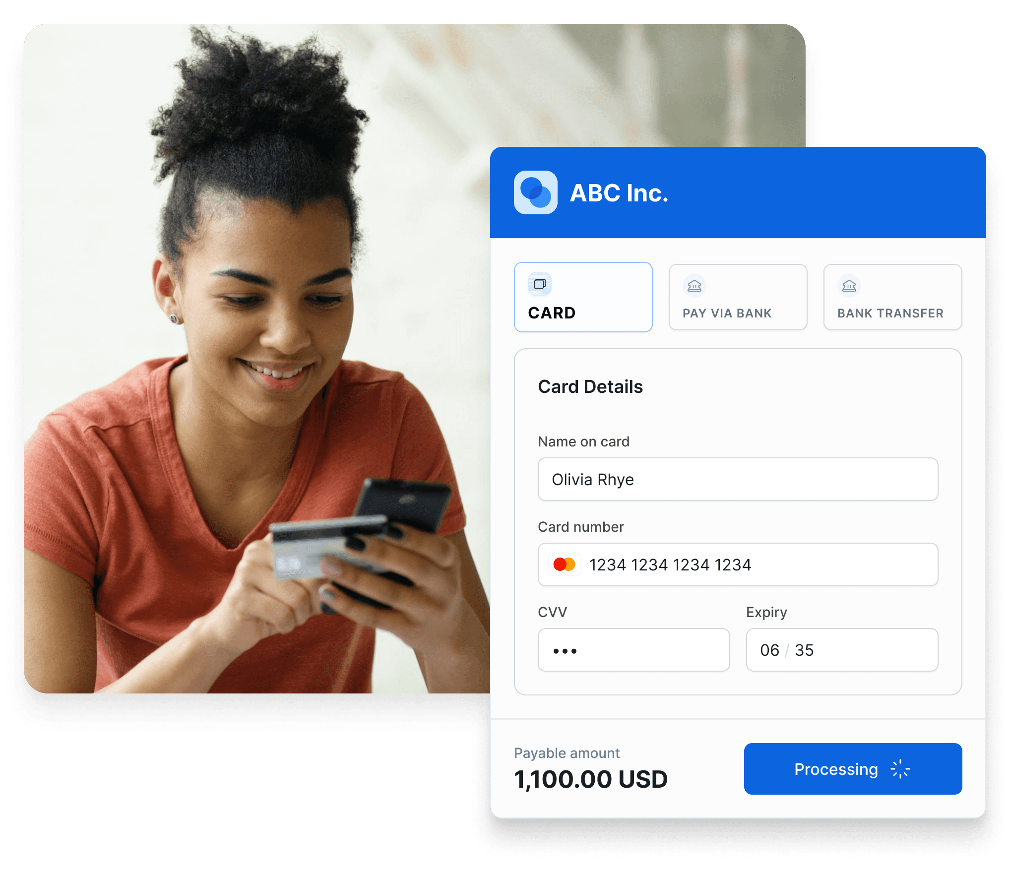 Customer chooses how to pay. Enters details. Completes payment.