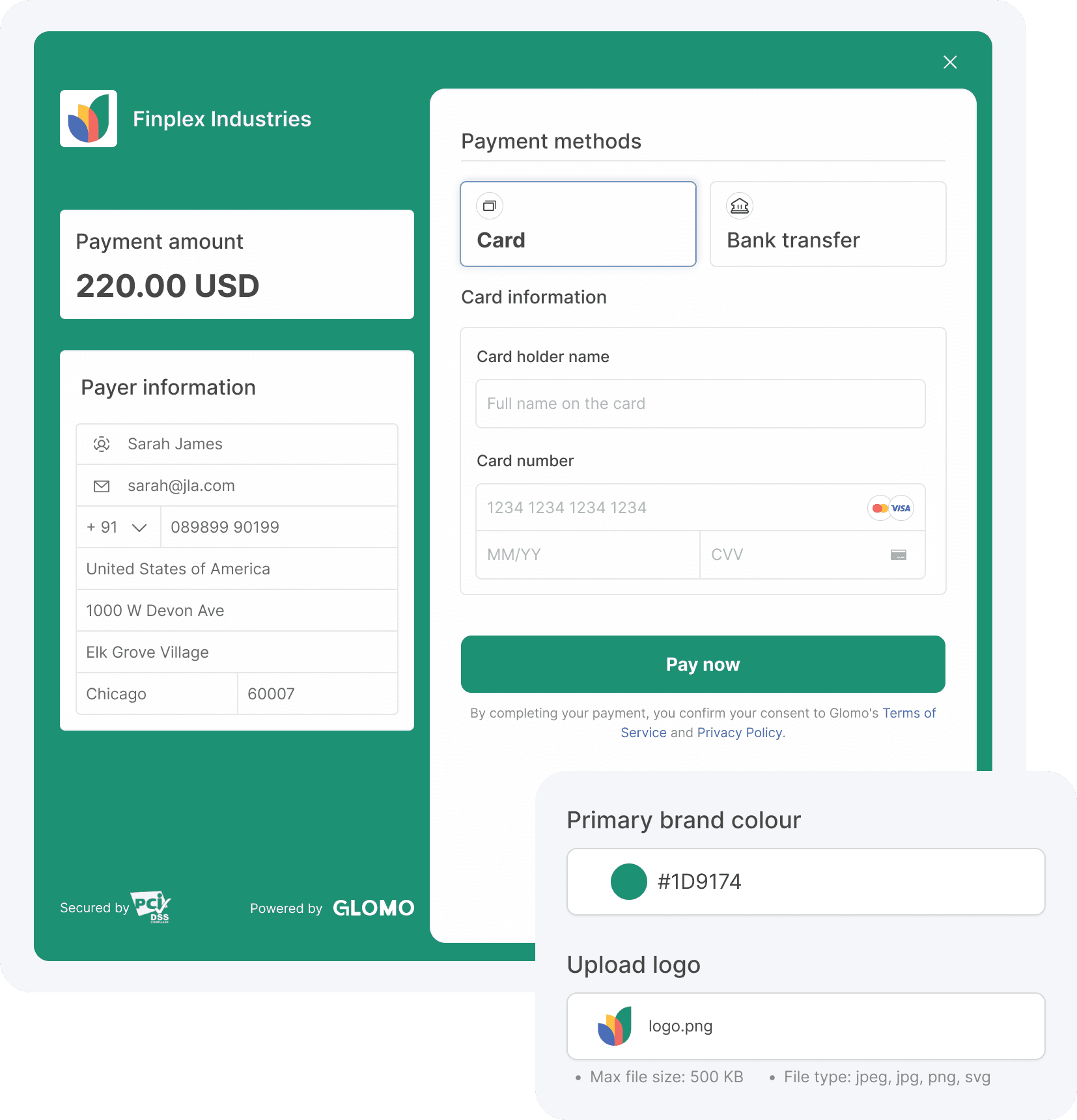 Embed Checkout directly into your site or direct customers to a Glomo-hosted page
